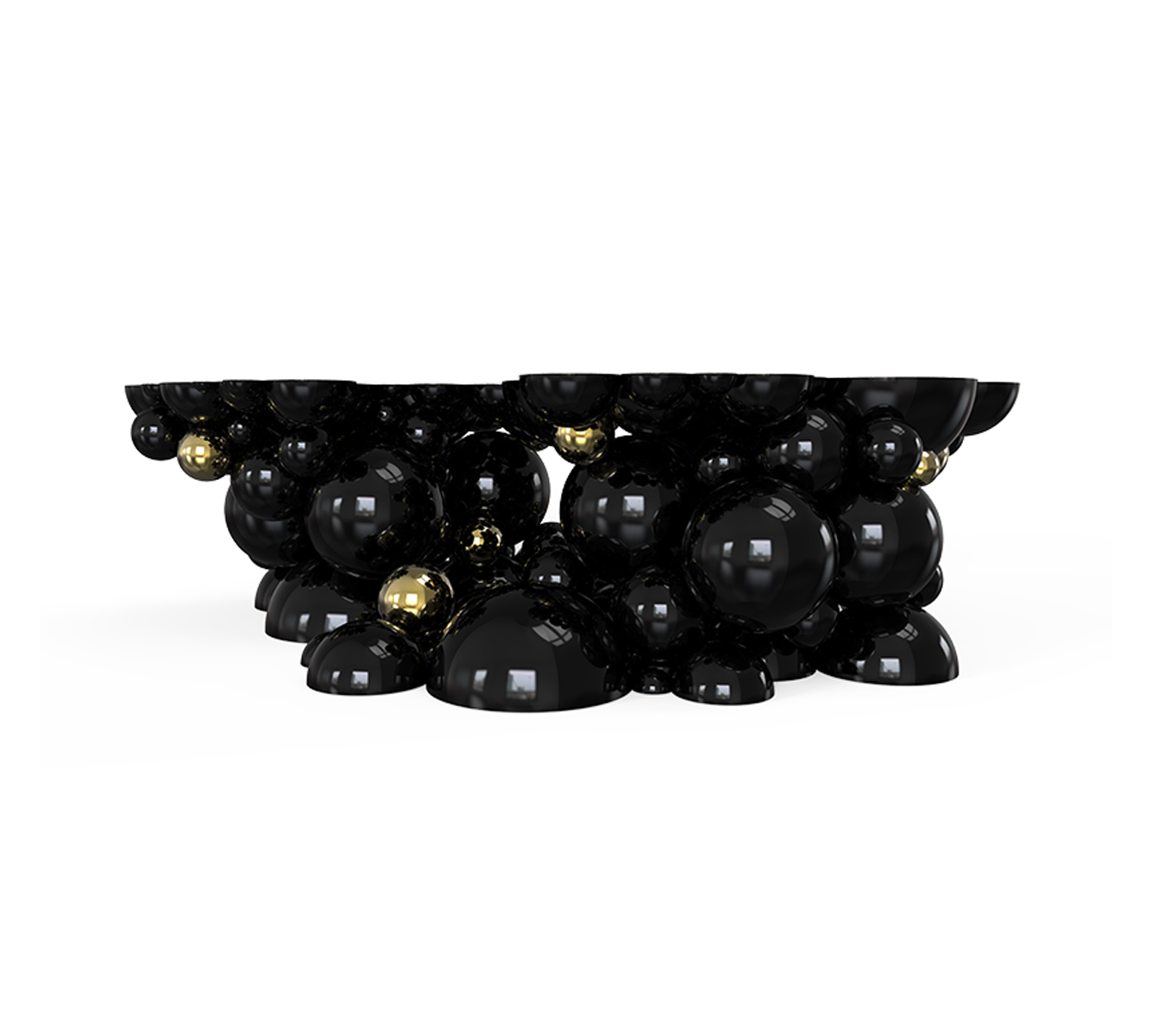 Table composed by metallic spheres and semi spheres joined together.