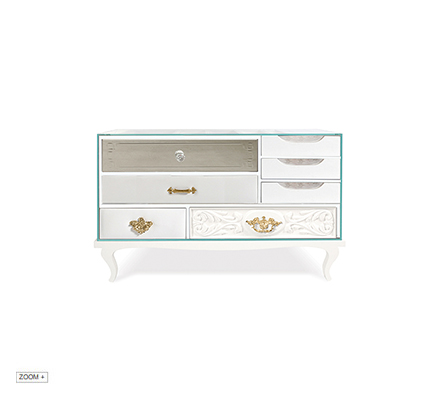 Bedside Table with a base made in wood; the top is made from tempered glass; composed by seven drawers.