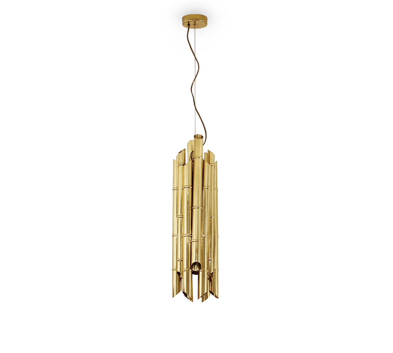 Sakishima Islands are part of Ryukyu islands chain, located at Japan southern- most. SAKI Pendant Light is a tribute to this unforgotten island, recognized by its almost extinct bamboo roots harvest, which once were part of the local landscape. Through a rythmic composition of matte brass canes, SAKI Pendant Light will make your living room an unforgettable place, filling it with nature inspired shapes that create a warm and cozy atmosphere.