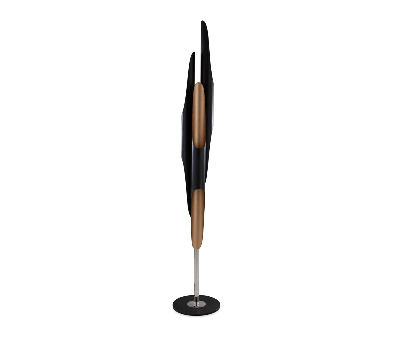 Coltrane standing lamp is the corner piece for a hotel lobby or a living room. It has a magical and a smooth presence, ideal for architectural environments. With 3 iron tubes, it makes a unique and fantastic lighting effect.