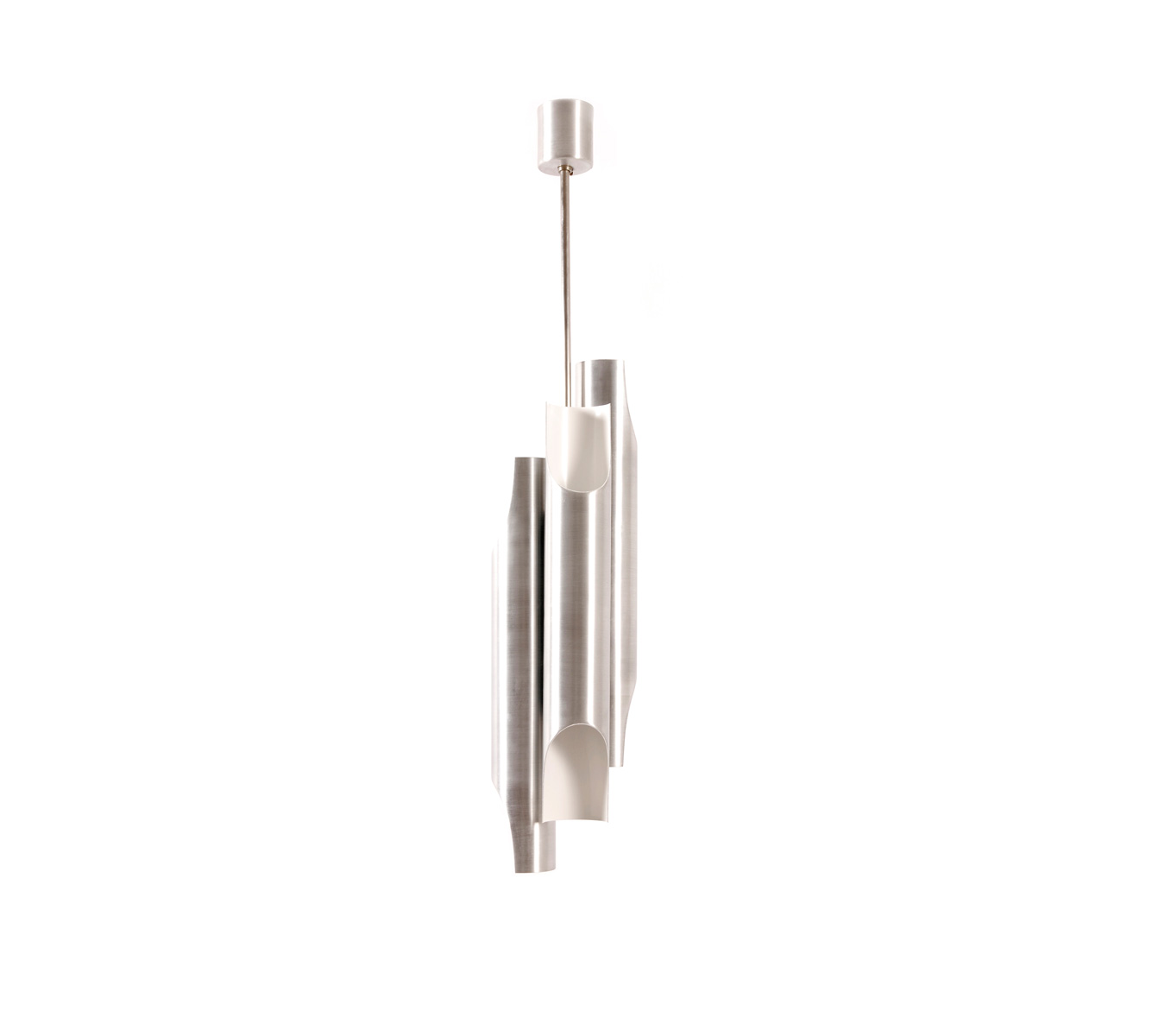 Galliano suspension lamp has a sculptural shape and it's versatile and contemporary. With up to 3, 4 or 5 aluminum tubes, it produces a unique, awesome effect.