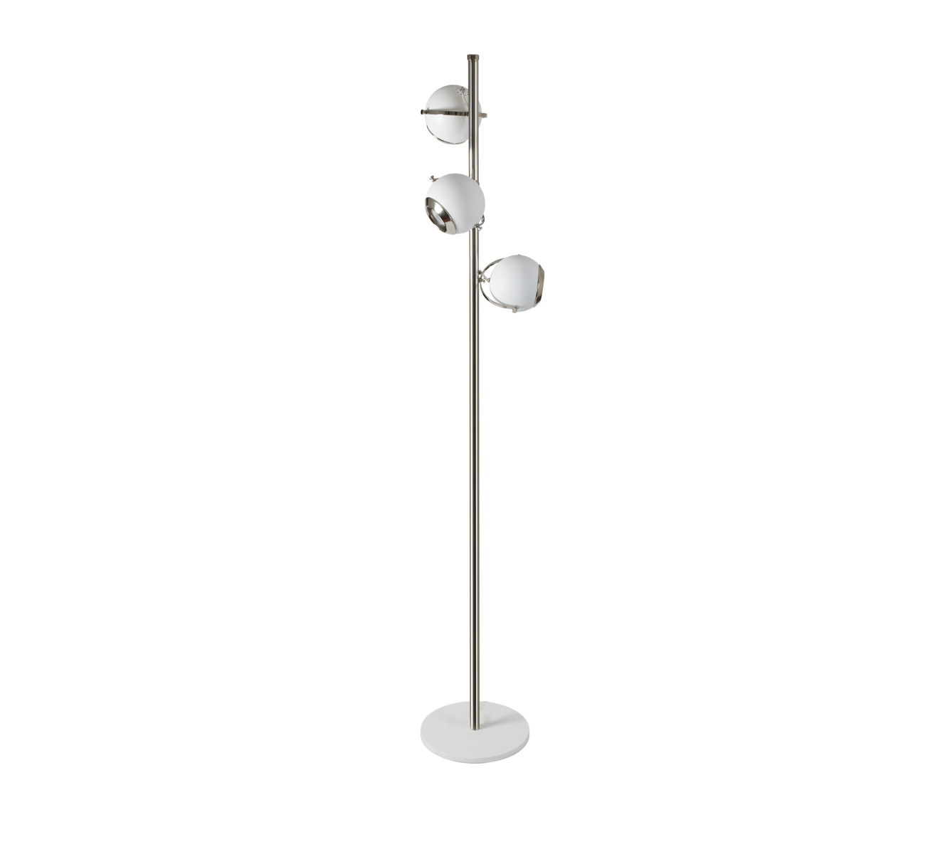 Scofield standing lamp is the corner piece for a jazz bar or a living room. It has a cool and a 60's presence, ideal for groovy and musical environments. This is a very technical and functional light. The diffusers rotate allowing increased versatility.