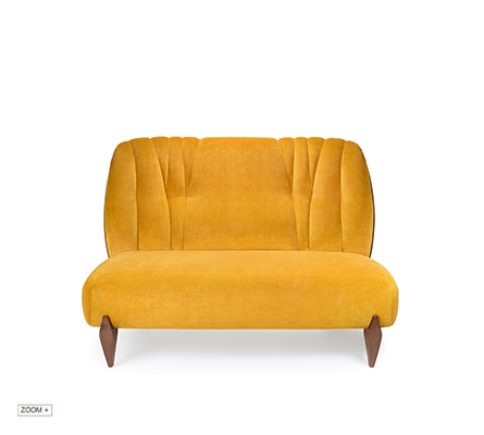 Upholstery: INSIDHERLAND Soft Velvet Ref. Dune and Camel. Legs: wood structure finished in walnut veneer in half gloss varnish.