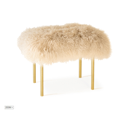 Top: INSIDHERLAND Mongolian Lamb fur Ref. White. Base: handcrafted feet in hammered brass with patinated effect finished in matt varnish.