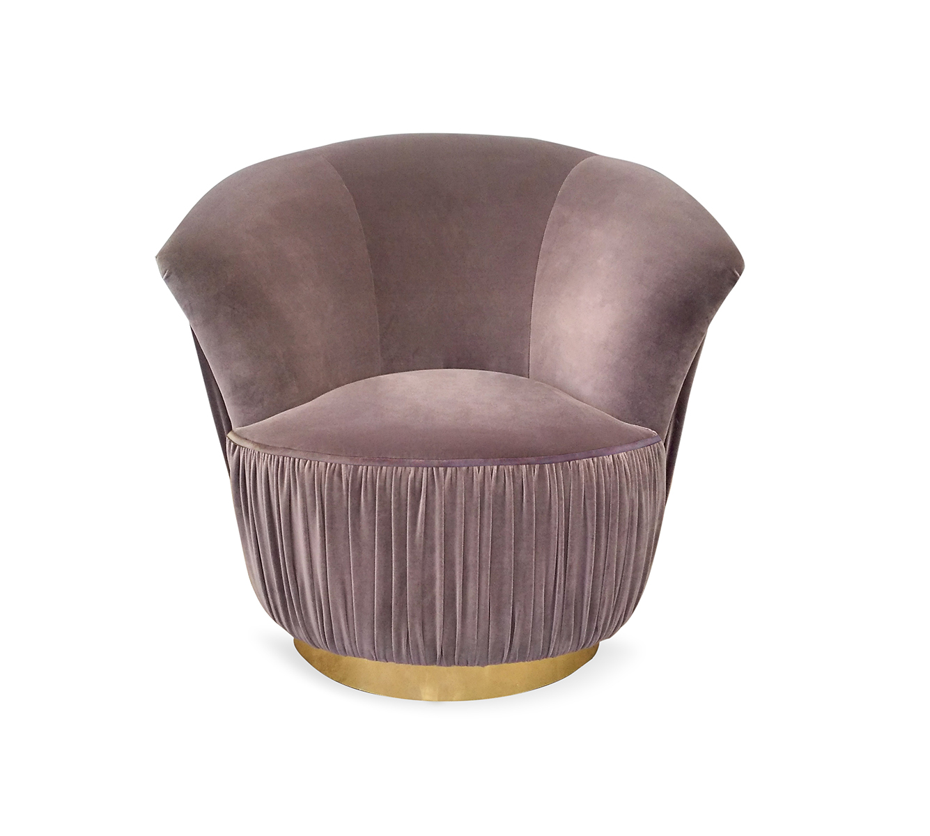 Poised and regal, the Countess reigns supreme even in the most luxurious designs. Her fanned back is reminiscent of the royal collars adorned by highnesses of days past. Her ladylike figure is covered in plush velvet upholstery fabric, sitting perched upon a brass ring base.
