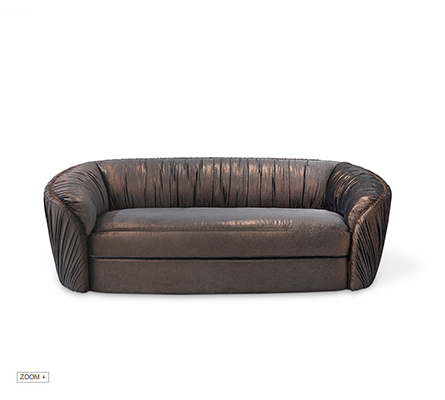 Let the Luscious sofa’s deep plush and sensual curves seduce you. Rippling pleats and provocative metal detailing add a stylish edge to this lavish statement sofa.