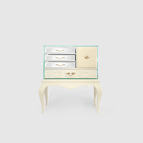Bedside Table with a base made in wood; the top is made from tempered glass; composed by seven drawers.
