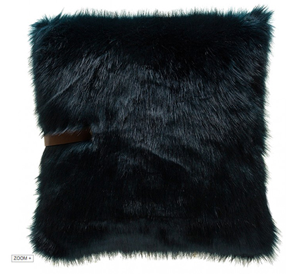 Blue fur pillow with leather strap.