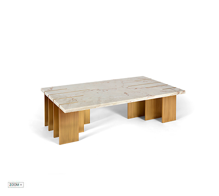 The Pianist center table, doesn’t represent the piano but the hands of the artist, vehicle of technique and emotion, The brass blades design the shape of the four longest fingers that, on a white keyboard in Estremoz marble, release a melody hidden within the musical notes.