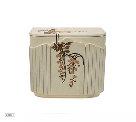 With its oval body, architectural details, sheen lacquered finish and whimsical stylized floral marquetry the Fleur Nightstand’s charm is sure to add glamour to the bedroom. Each flower is cut by hand from thin sheets of wood veneer. The delicate pieces are then carefully fit like a puzzle into the negative opening created using the same laborious traditional marquetry techniques.