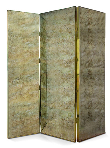 From the antique fashioned mirrors to the delicate detailed patterns, this temptress will have more than her fair share of lovers shielding themselves behind her screen. The enticing artwork is balanced against slender golden pillars casting the object as a standing temptress awaiting her prey.