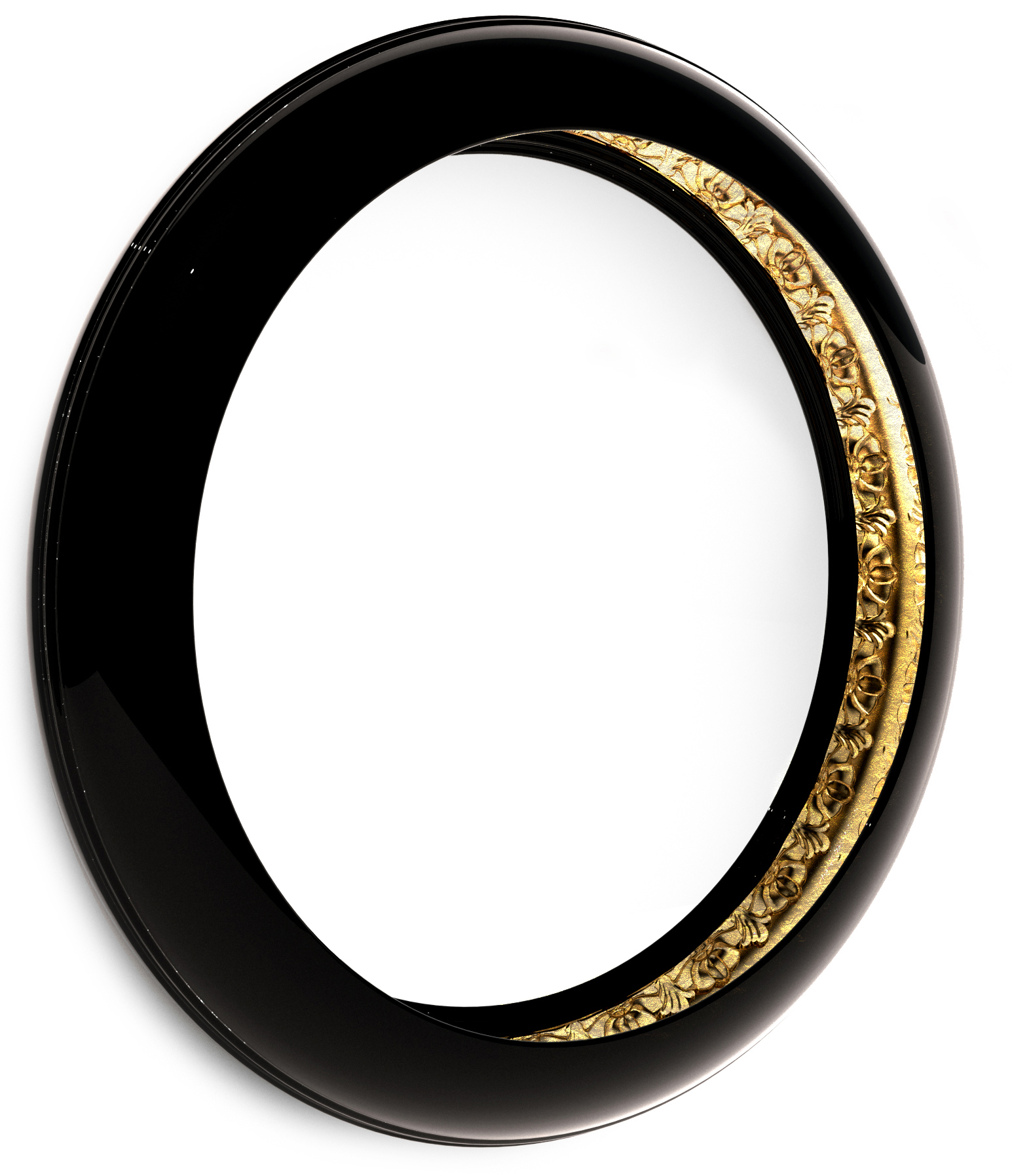 Like a jewel that reflects eternal beauty when it is contemplated, Ring is the mirror of the soul, which aspires to the sublime. Exploring the main function of a mirror, the richness of Ring lies within its reflection. Ring evokes an antique unreachable treasure that could only be found on the most remote place on Earth. Ring contains a mirror frame in black lacquered high gloss, with a minimalist line on the outside and another carved handmade on the inside. A precious piece of art with its interior made of refined carved wood as exquisite as its owner. Ideal for an unique and exclusive home, Ring will reflect elegance once it’s on your living room or your bedroom.